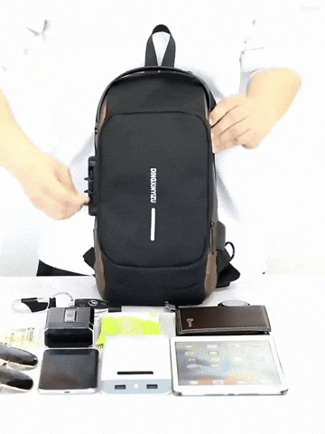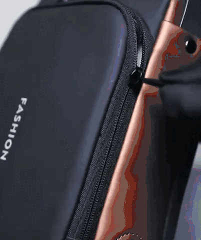 Tiene cierre con clave de seguridad, bolsillo oculto en la parte trasera y diseño de cremalleras reforzadas.