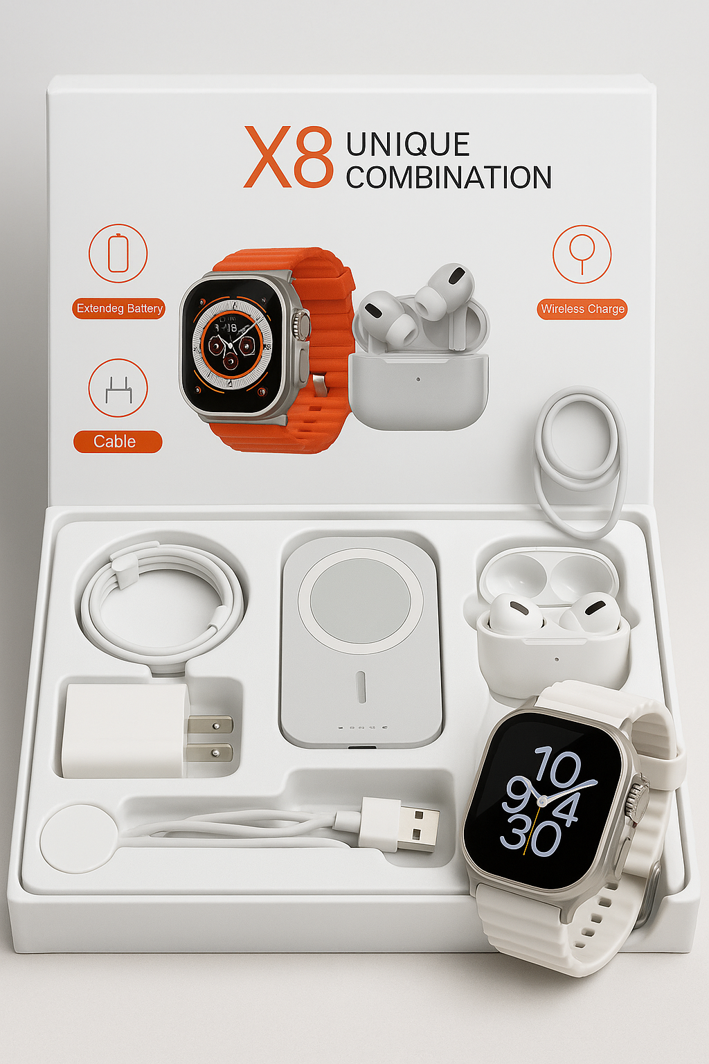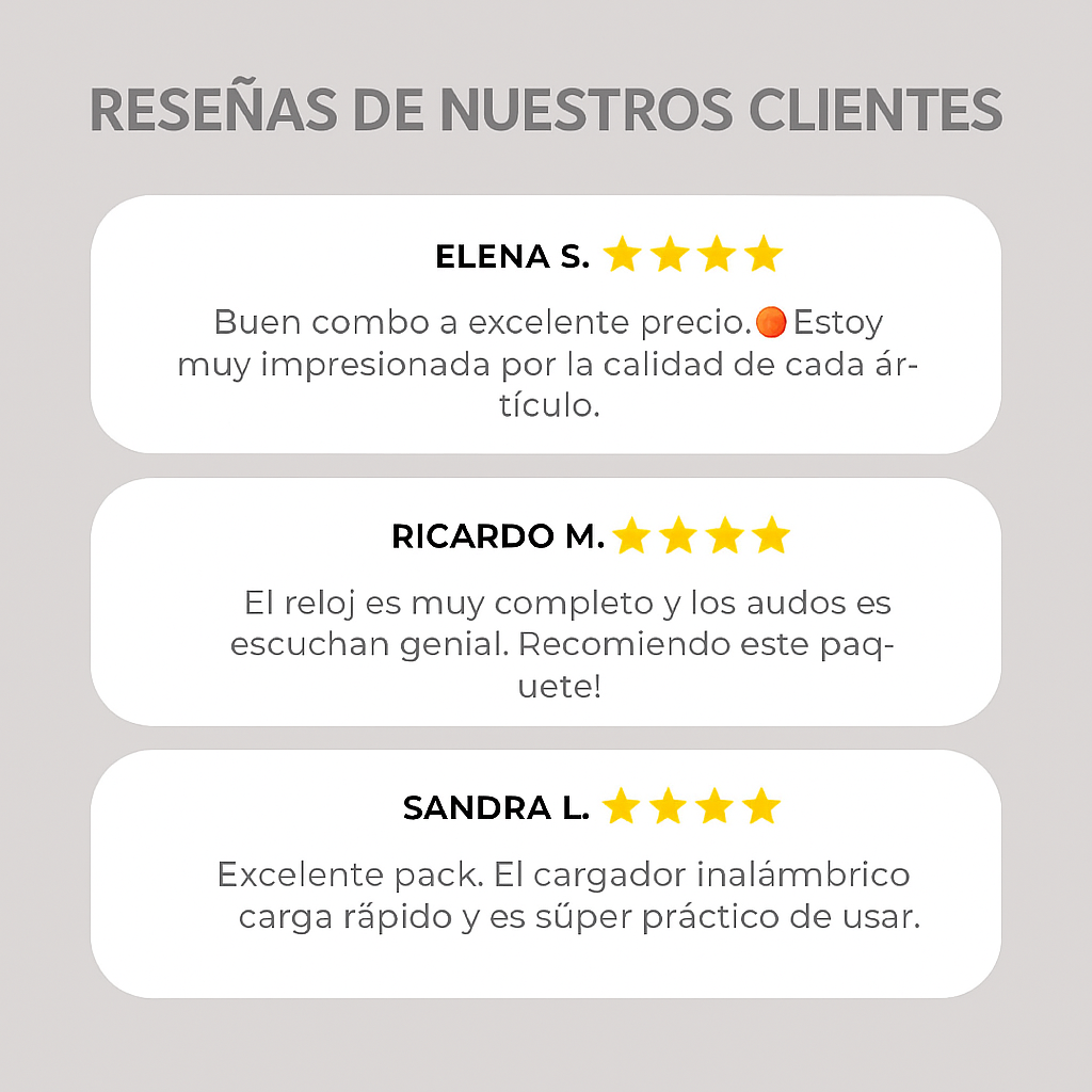 Todos los productos del Combo X8 son genéricos con diseño tipo Apple, pero ofrecen excelente funcionalidad, compatibilidad universal y acabados premium. Una opción accesible y confiable para quienes buscan estilo y utilidad al mejor precio.