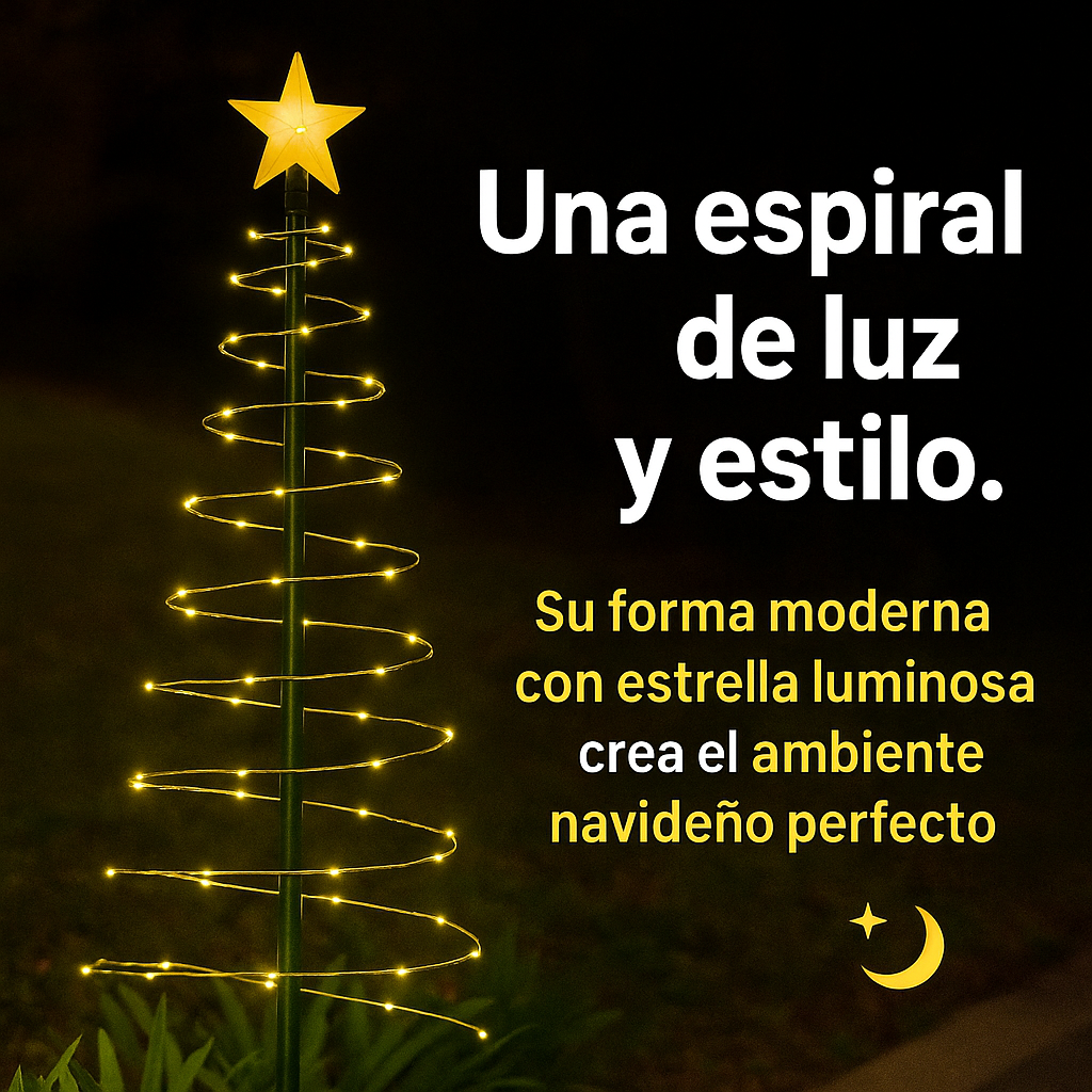 🎅Diseño navideño elegante: Espiral luminosa con estrella en la punta.