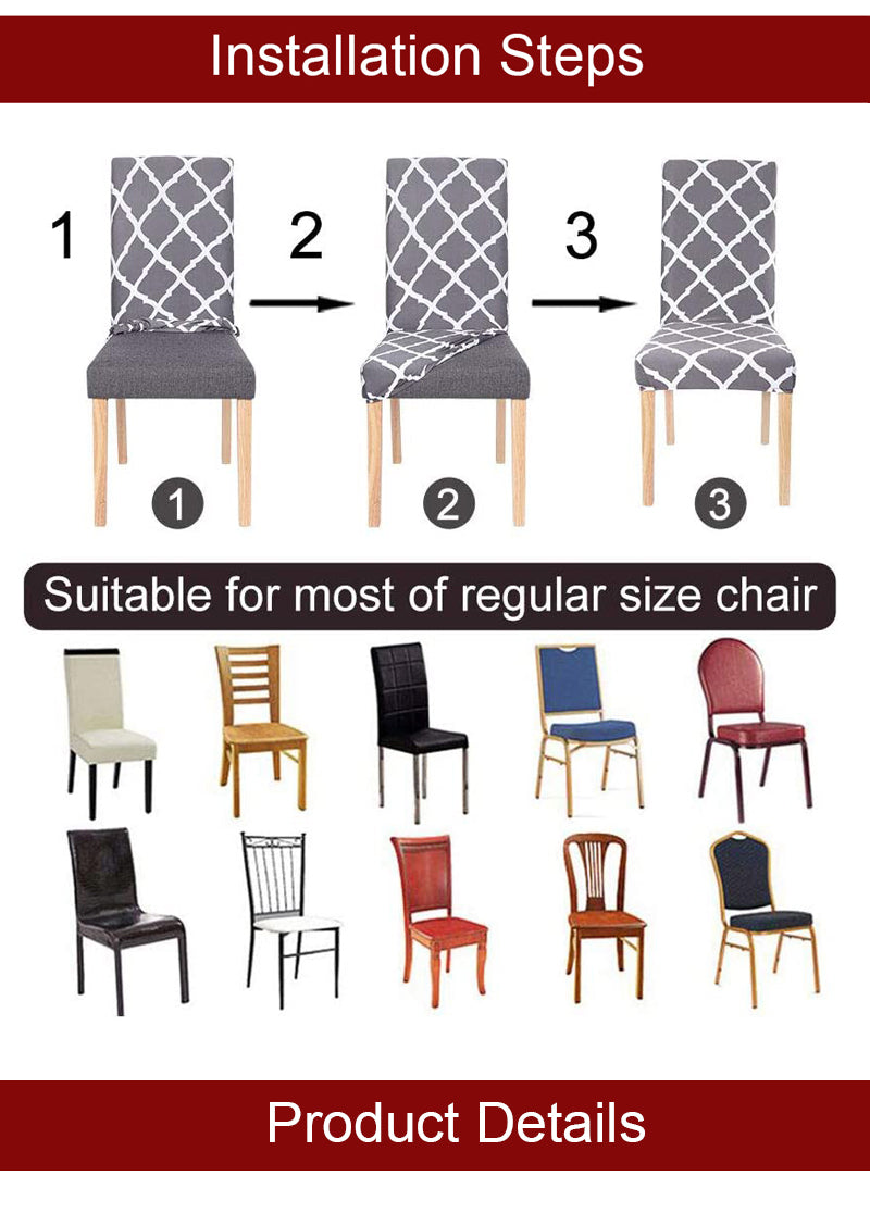 Hecho de 93% poliéster y 7% elastano con diferentes patrones de estilos. Alta y buena elasticidad, suave, resistente a las arrugas y duradera, por lo que nuestras fundas de silla se adaptan a la mayoría de tipos de sillas.