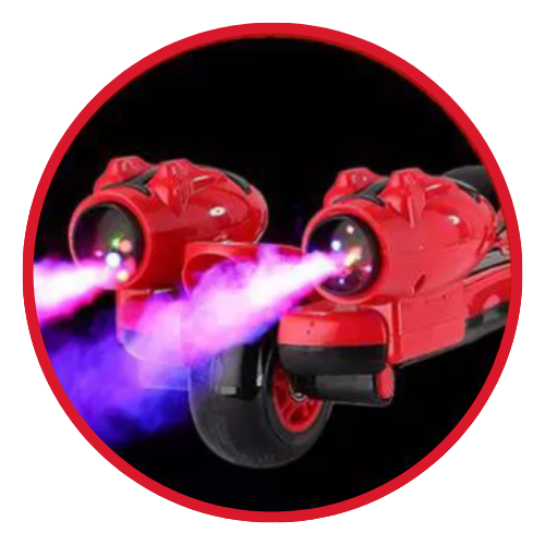 Encender efectos de luces y humo: Usa el botón en el scooter o el control remoto para activar las luces LED y el efecto de humo según desees.