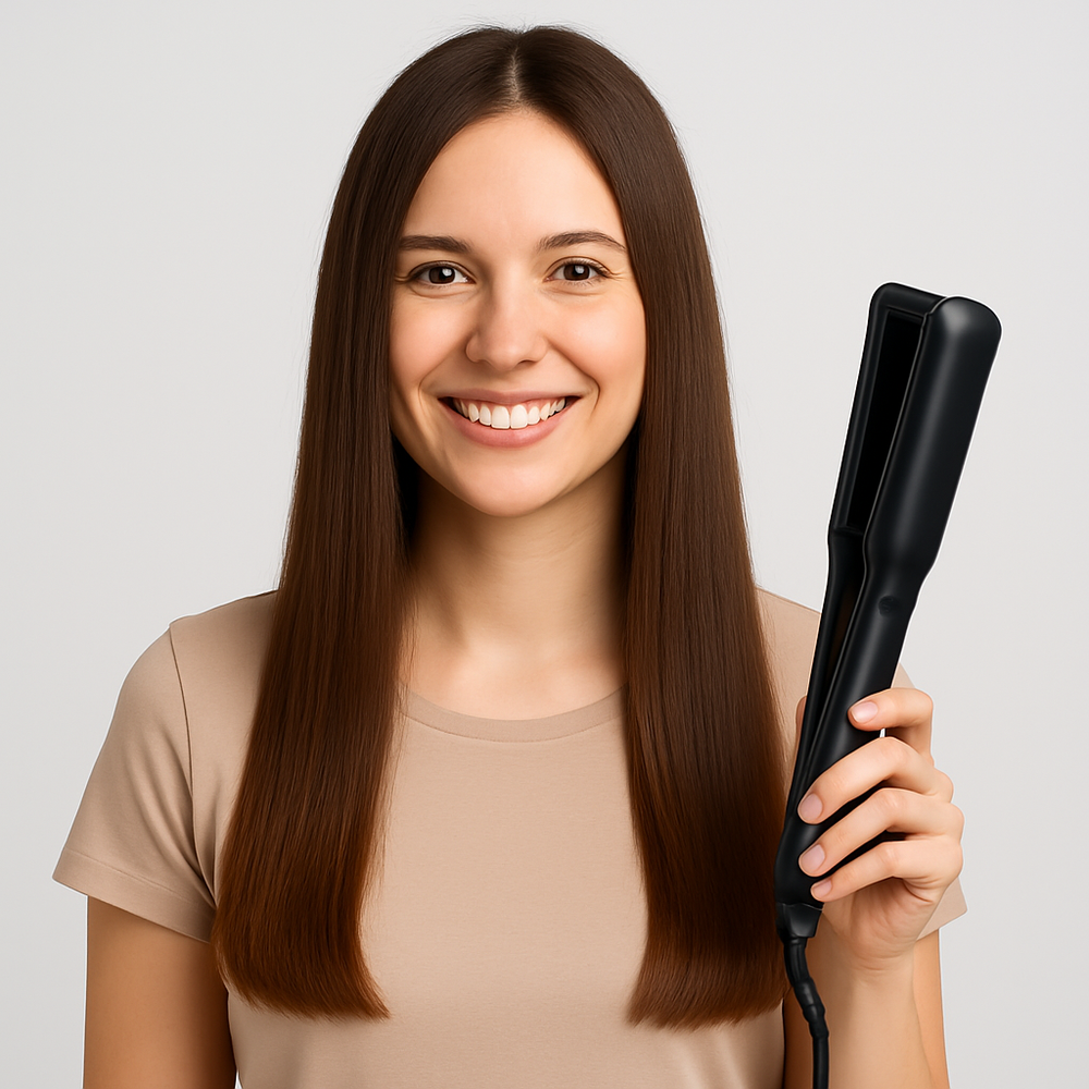 Logra un alisado perfecto en menos tiempo, gracias a sus placas de titanio premium que deslizan suavemente y protegen tu cabello.