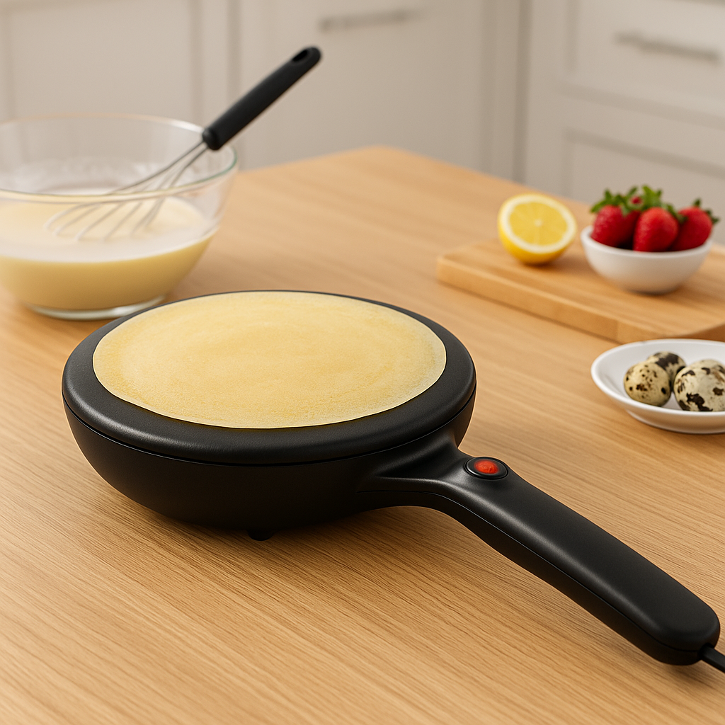 Nuestra crepera eléctrica antiadherente está diseñada para que cualquier persona —incluso sin experiencia— haga crepes delgadas, uniformes y perfectas en solo segundos.